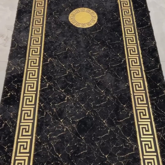 This Black & Gold Marble Design Carpet is thoughtfully crafted to enhance the look of your home with its rich texture and timeless design. The bold marble pattern combined with a classic border creates a premium aesthetic that instantly elevates any room.