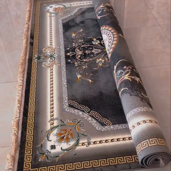 Crafted with premium velvet-touch fabric, enriched with intricate golden medallion detailing, and backed with anti-slip latex, this carpet perfectly balances luxury aesthetics with everyday comfort and durability.